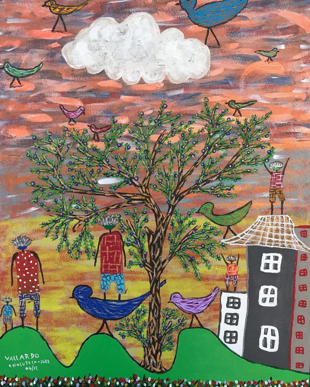 Nacido en 1976, en Goascorán, en el departamento de Valle, Honduras, el maestro Vallardo ha cultivado un profundo vínculo con sus raíces culturales, que se reflejan en cada una de sus obras, impregnadas de una espiritualidad que fusiona lo antiguo y lo contemporáneo. Su pintura es una ventana a un mundo primordial, lleno de figuras arquetípicas, símbolos ancestrales y colores vibrantes que narran historias de tierra, historia e identidad.