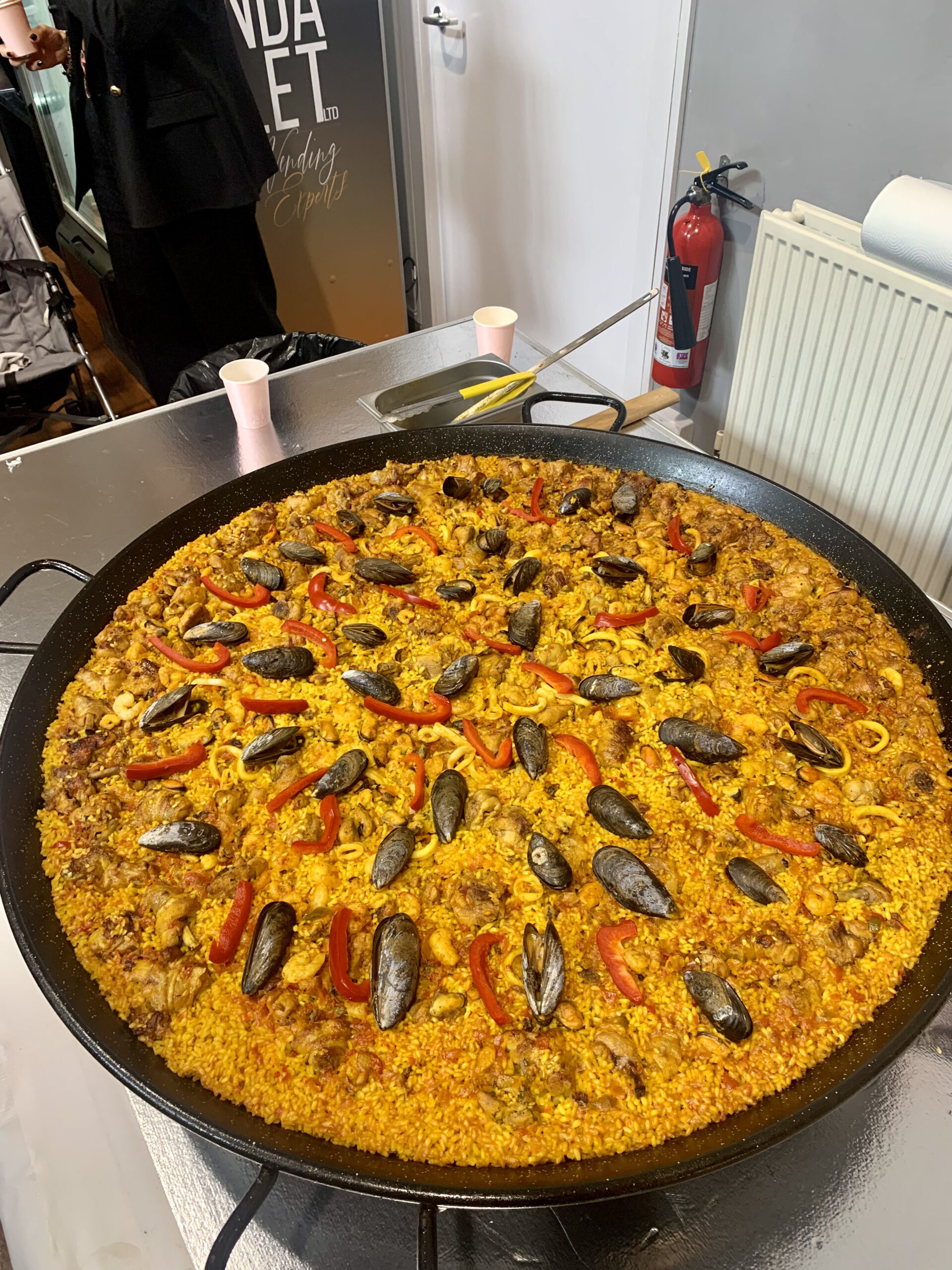 El cocinero Frank de Marie Tropical Tapas Bar, famoso ya por su destreza culinaria, preparó con esmero una versión mixta de carne y mariscos, apartando un poco de arroz y verduras para los vegetarianos. A eso de las dos de la tarde, se formó una fila interminable de visitantes ansiosos por probar el delicioso plato. La afluencia fue tan alta que casi no alcanza para todos. ¡Una verdadera muestra de éxito!