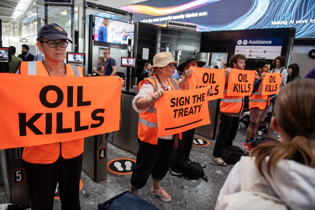 Nuevas imágenes obtenidas por el Manchester Evening News parecen mostrar a un grupo de personas paradas junto a las máquinas expendedoras de billetes en la Terminal Dos (T2) y a un hombre vestido con un traje azul claro frente a una de las máquinas.